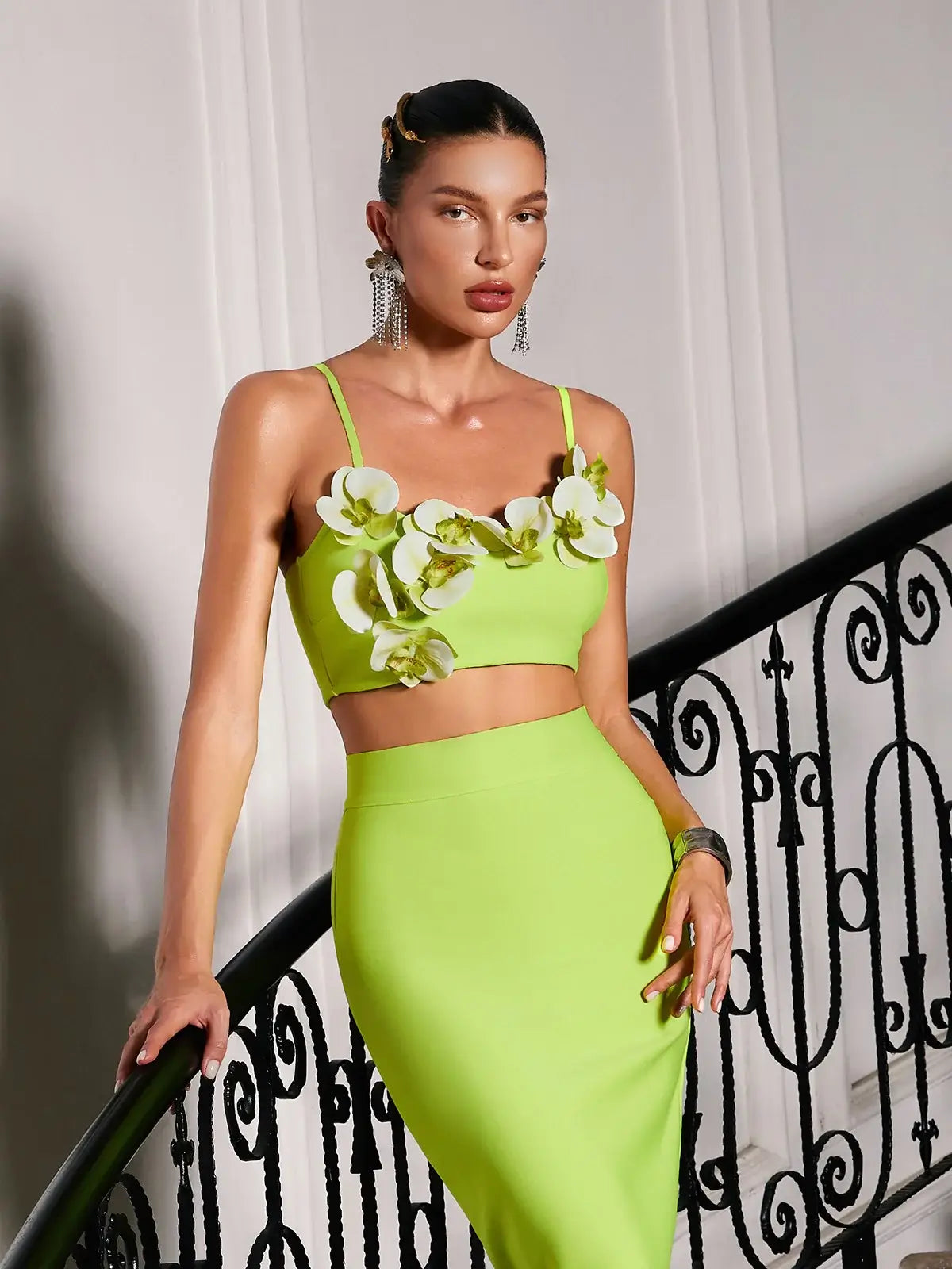 Indulge in this luxurious two – piece evening outfit that is perfect for making a statement at formal events. The form – fitting design accentuates your figure, while the 3D floral detailing adds a touch of glamour. Crafted from high – quality stretchy fabric, it offers both style and comfort.