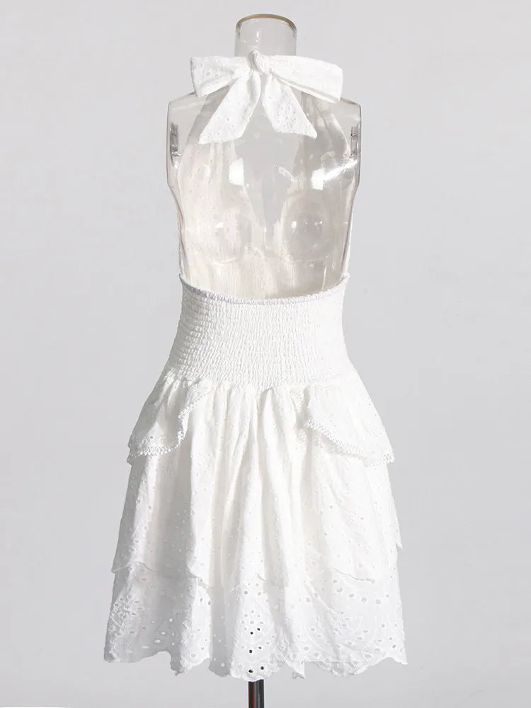 - Halter Necktie with Bow: Attached at the back for adjustability