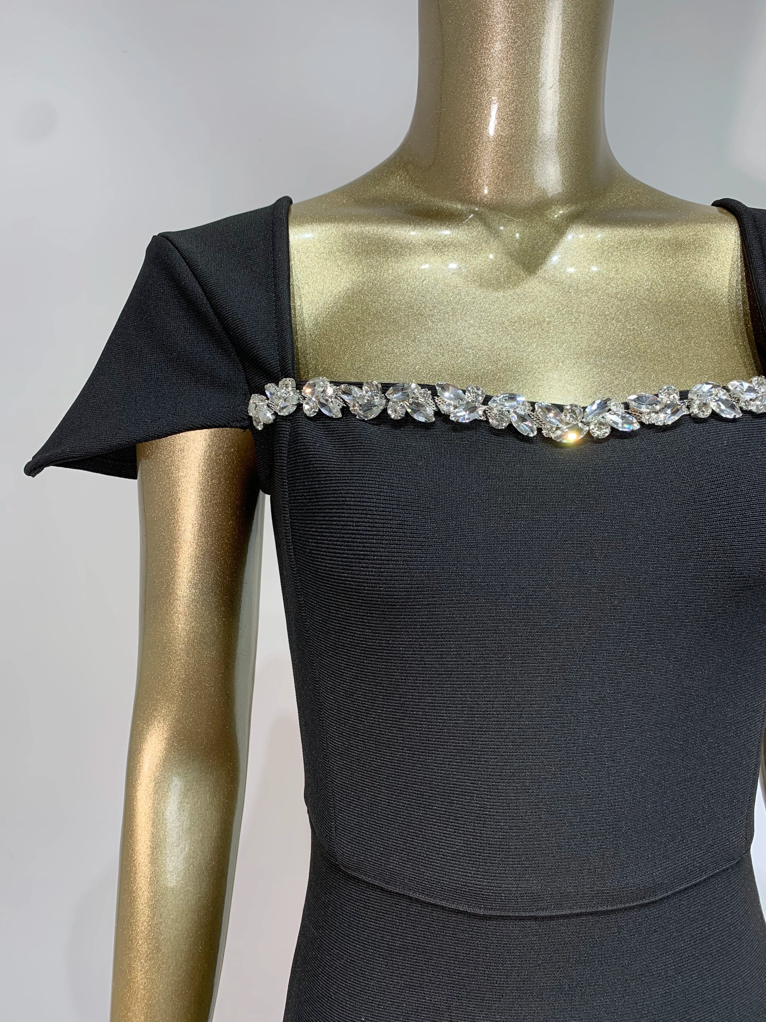 - Embellishment: A row of large, faceted crystals/rhinestones at the neckline