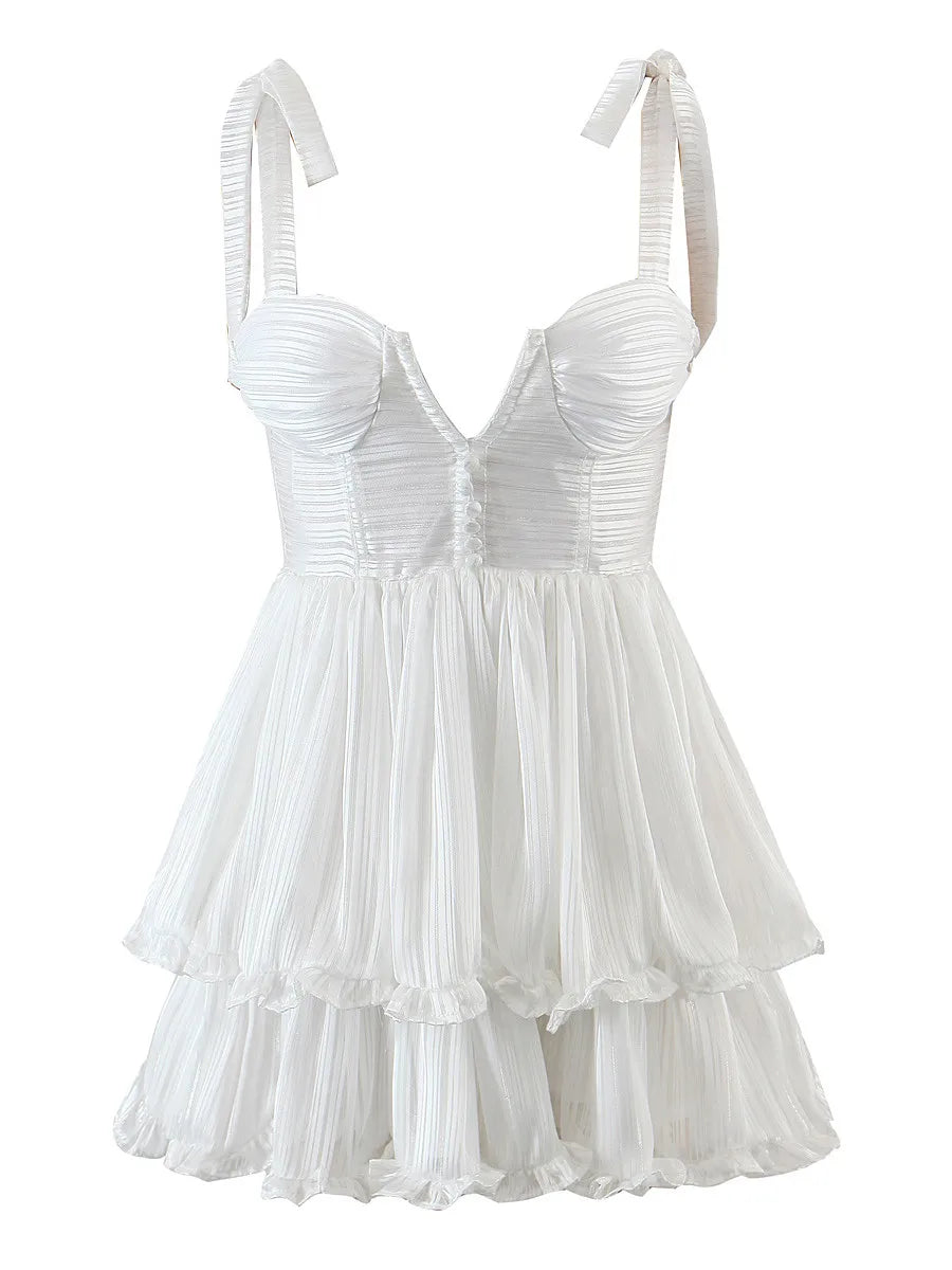 - Skirt Overlay: Tiered, ruffled design with two layers and ruffled trim