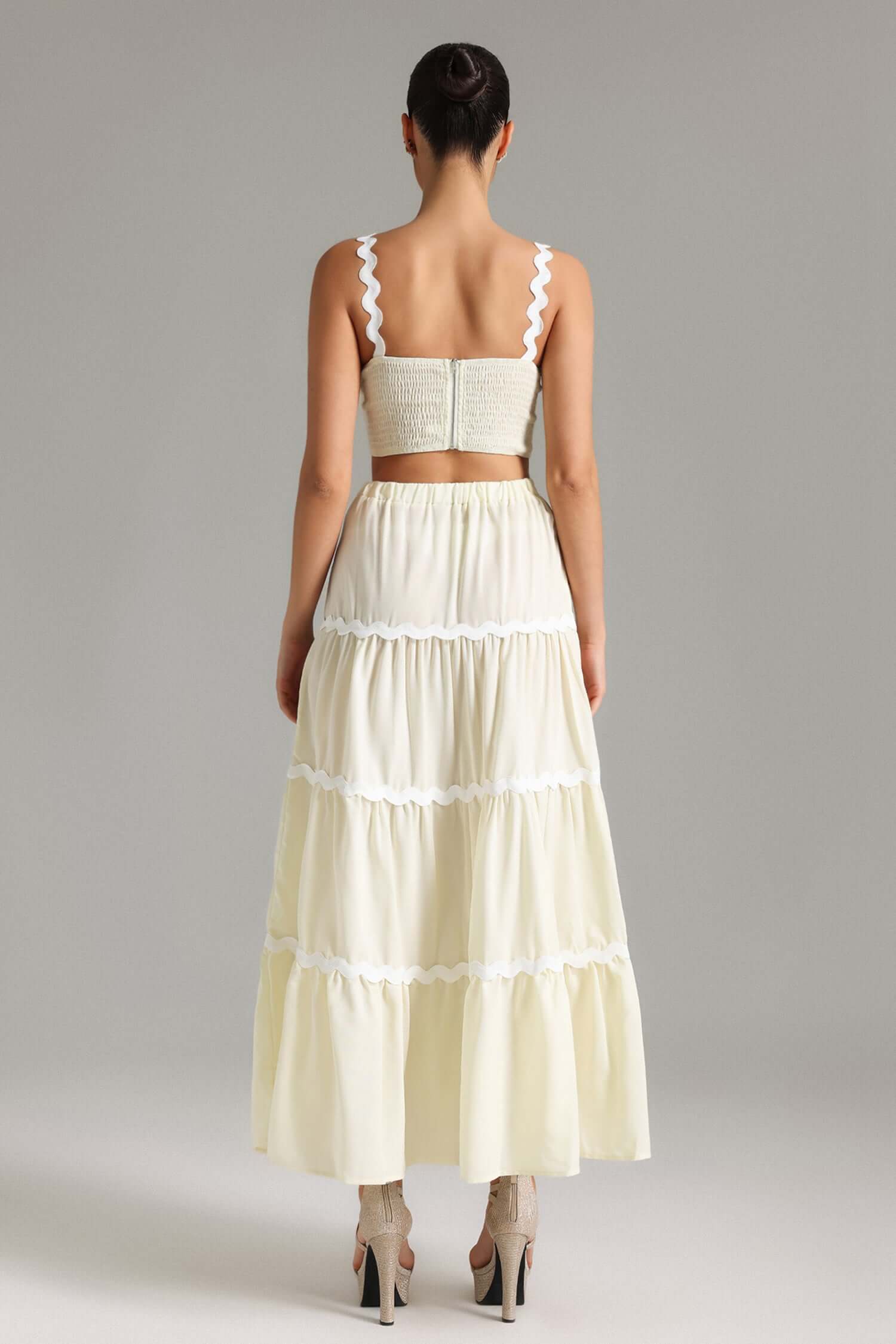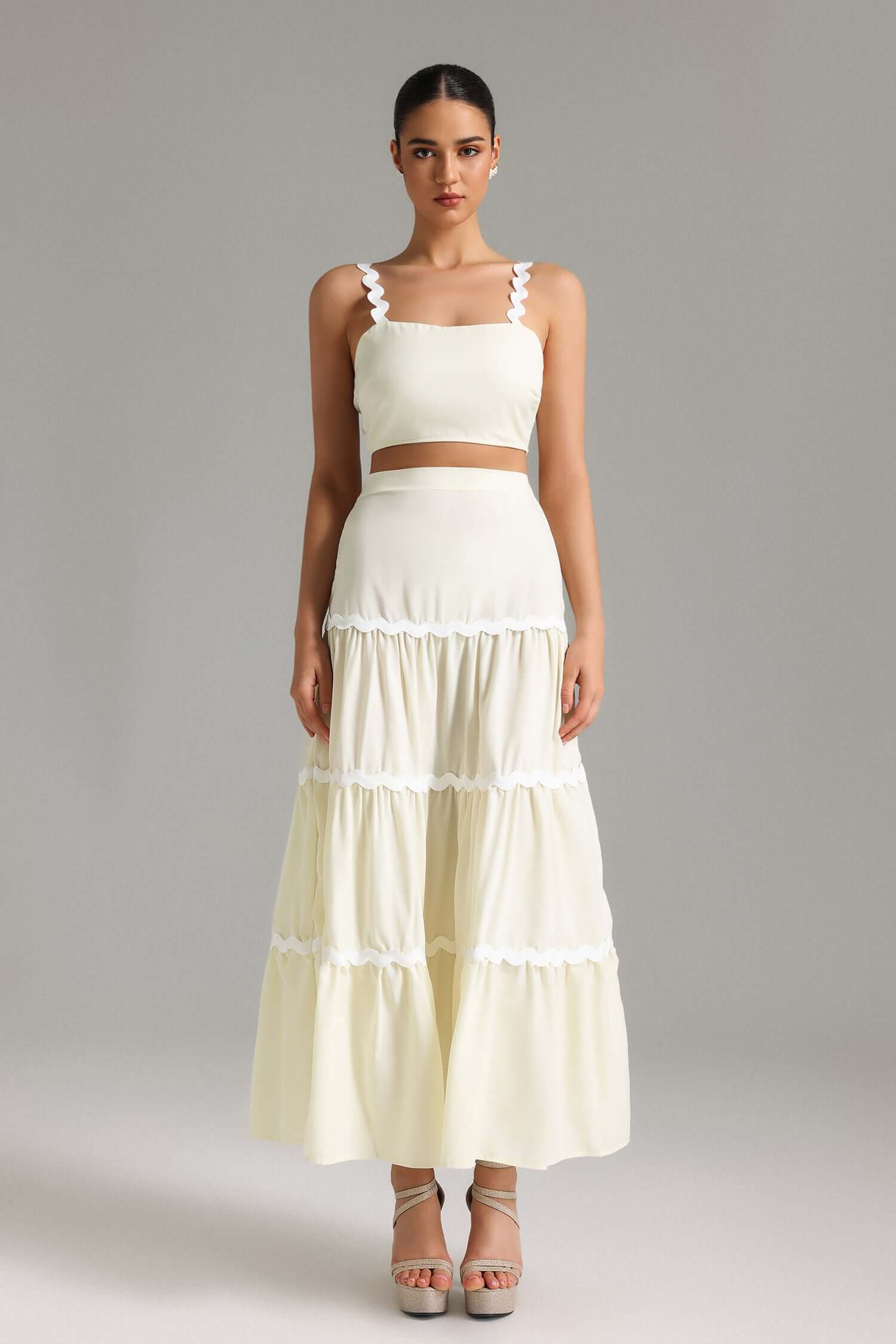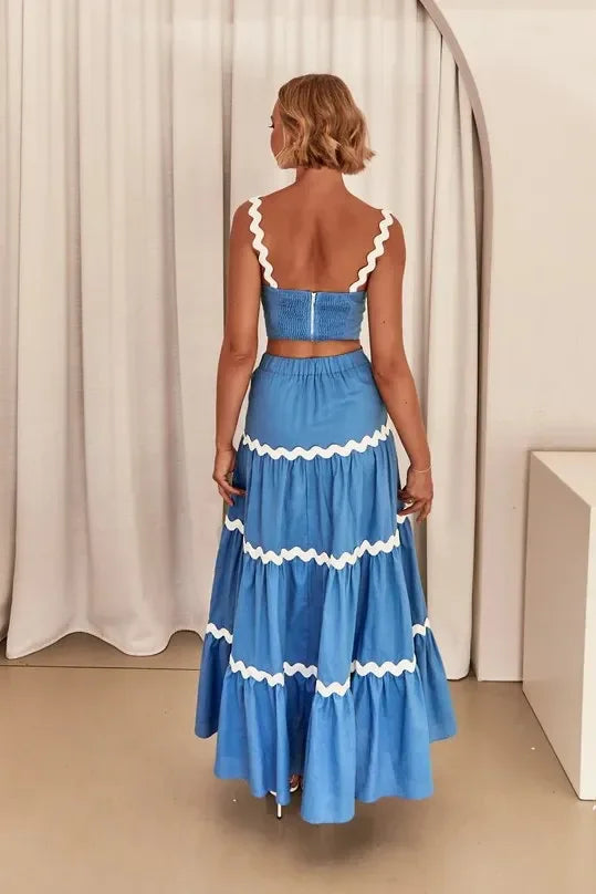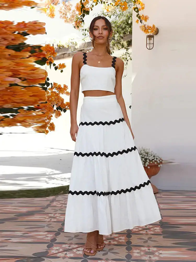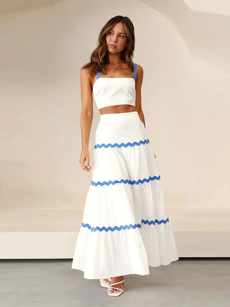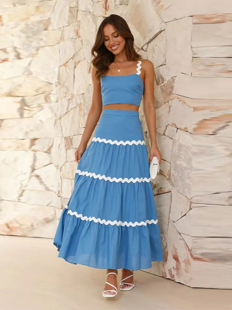 Indulge in this high – quality two – piece outfit perfect for summer. It combines a stylish crop top with a voluminous maxi skirt, offering an elegant and feminine look for warm days.