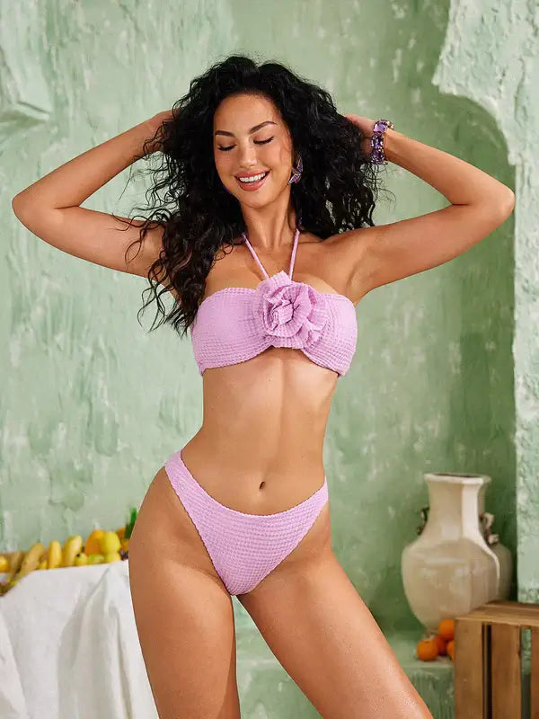 Indulge in the perfect blend of style and comfort with this exquisite bikini set. Ideal for beach and resort outings, it combines decorative floral accents with a form – fitting design to make you stand out.