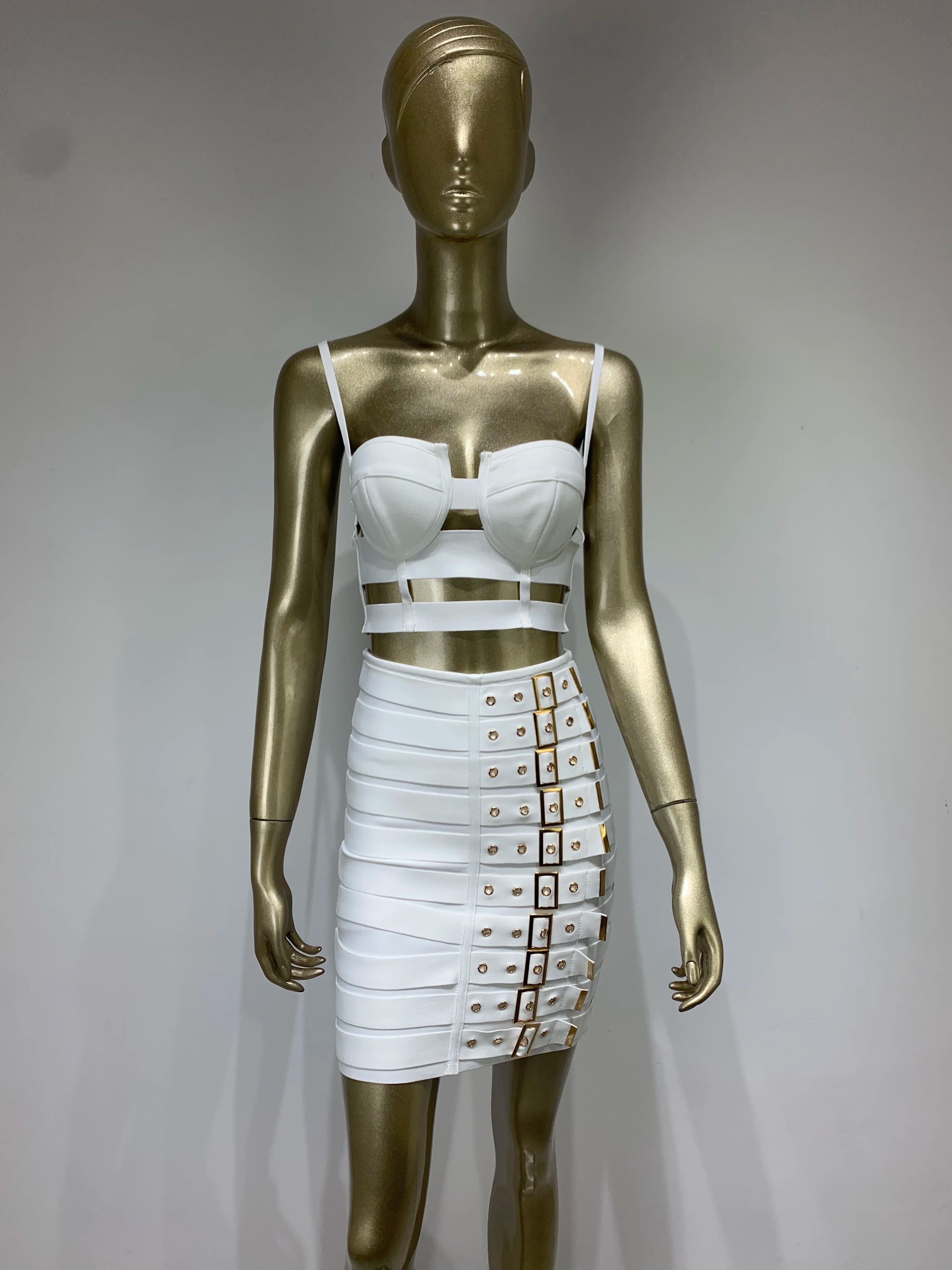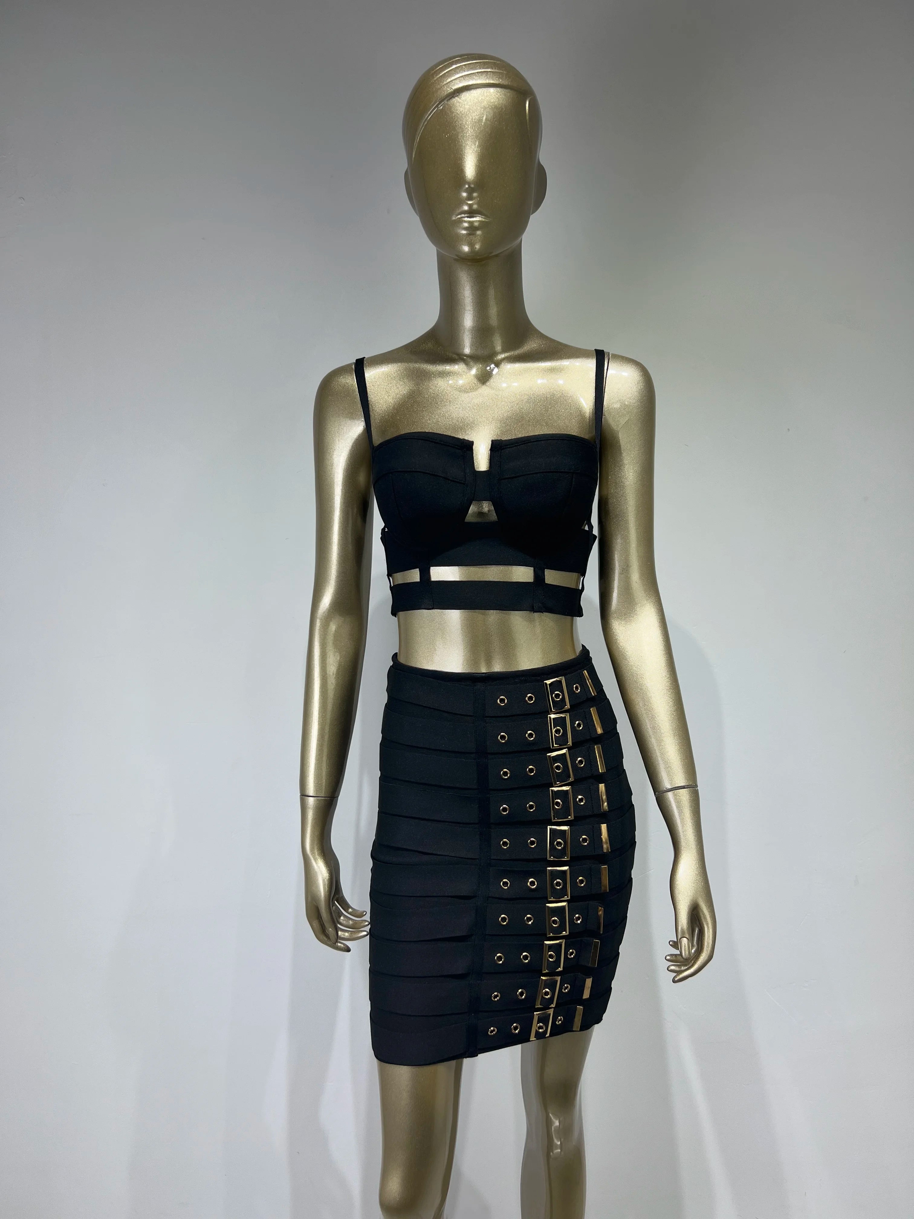 - Skirt Features: Bodycon silhouette, back zipper closure, and optional gold side accents
