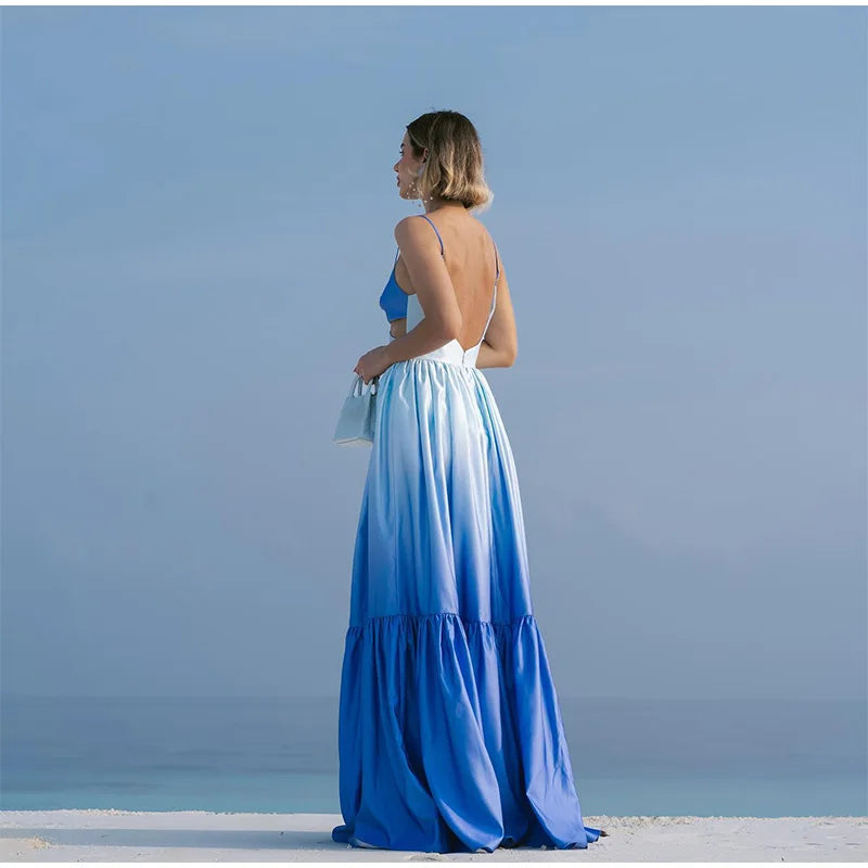 Indulge in the elegance of this luxury women’s maxi dress. It’s perfect for special occasions, offering a combination of style and sophistication. The dress features a beautiful gradient design and a flattering silhouette.