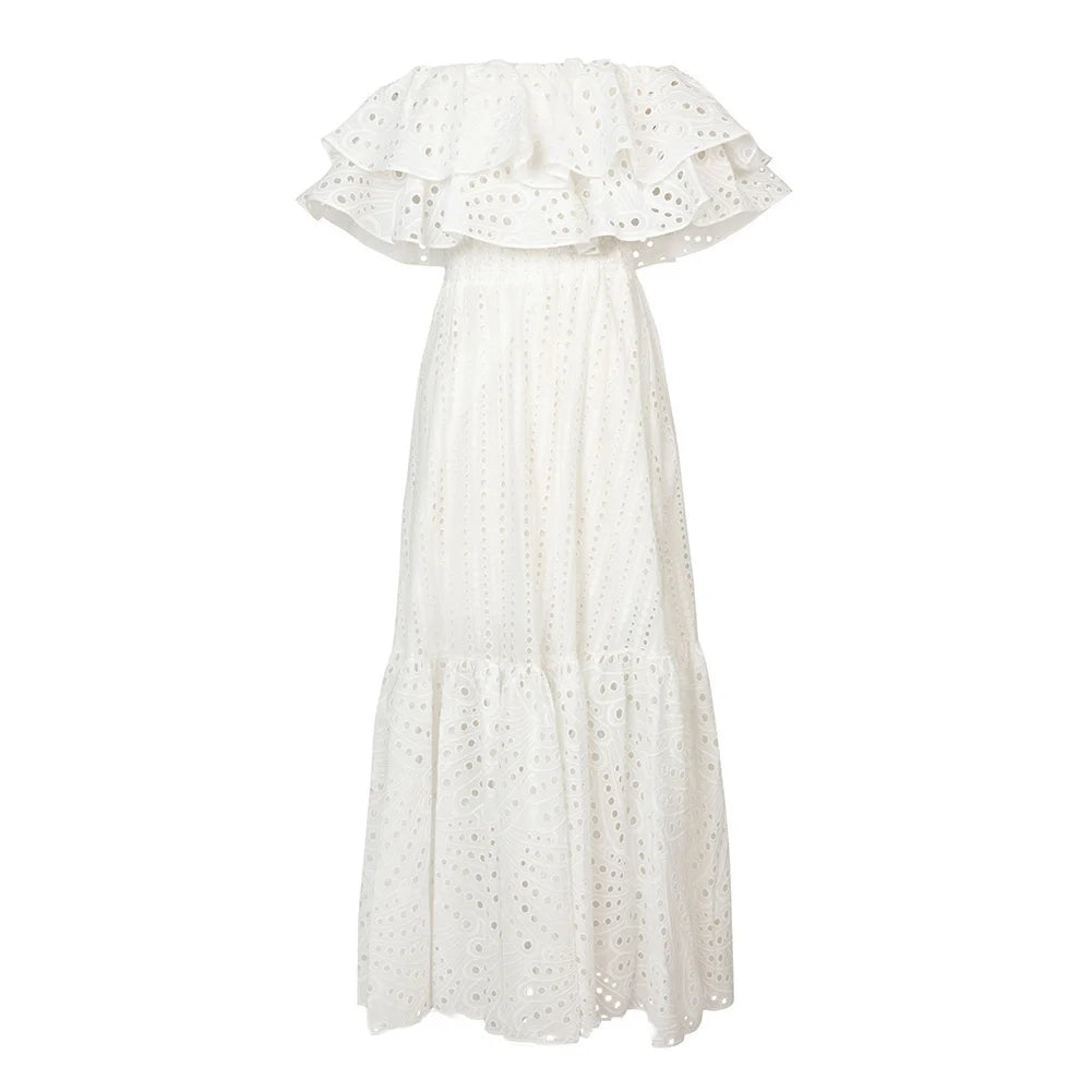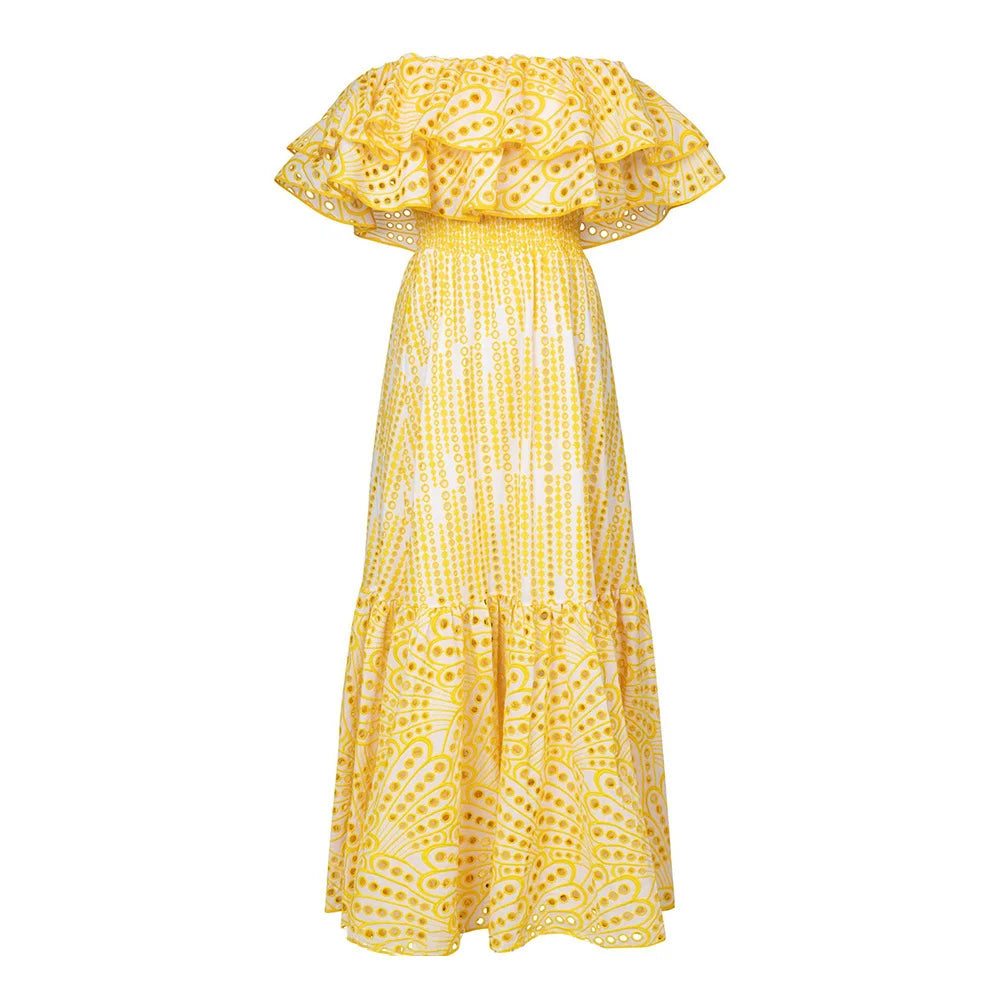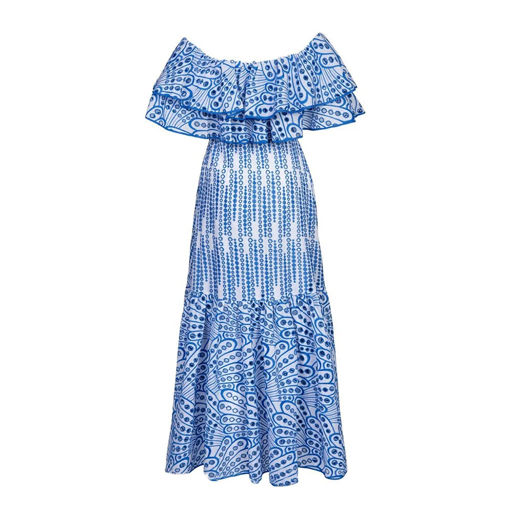 - Neckline: Off – the – shoulder with multiple tiers of ruffled detailing
