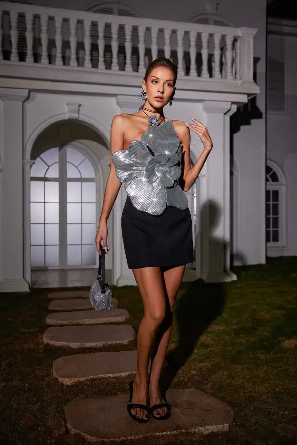 Indulge in the elegance of this luxury women’s formal party dress. It features a stunning floral appliqué that adds a touch of drama, while the tailored silhouette flatters the figure. Ideal for making a statement at formal events.