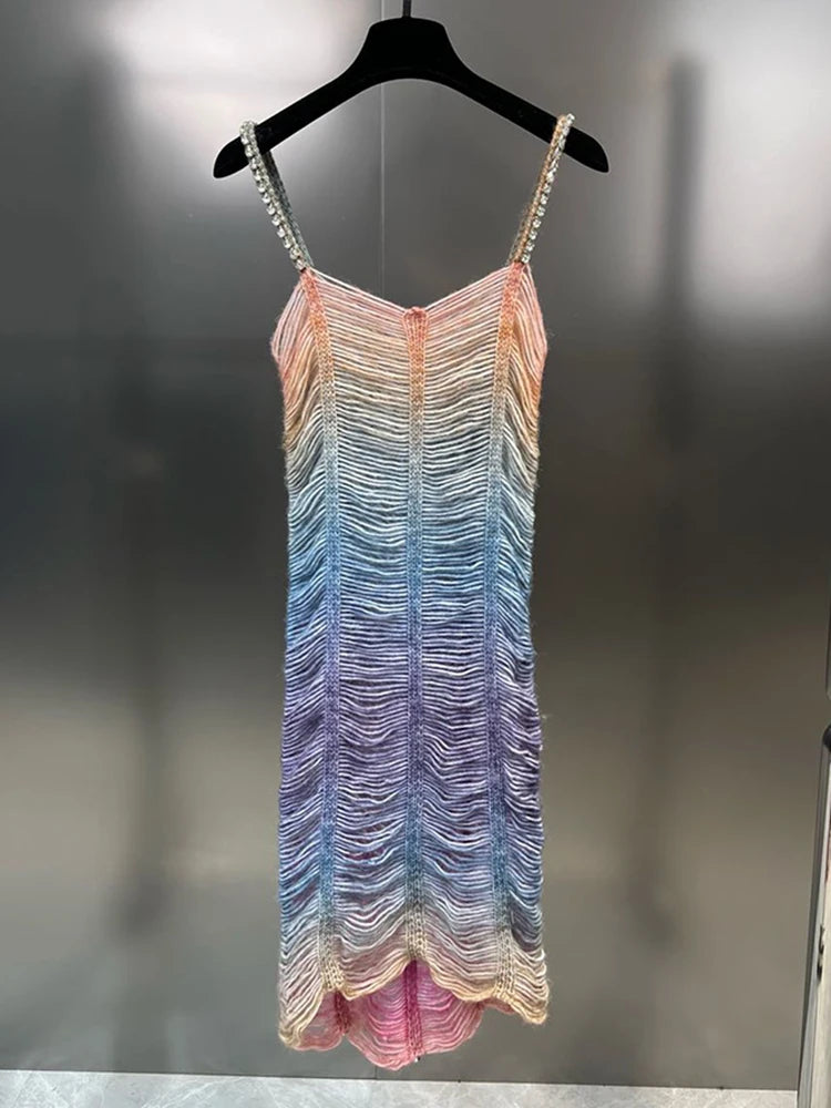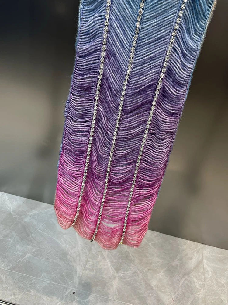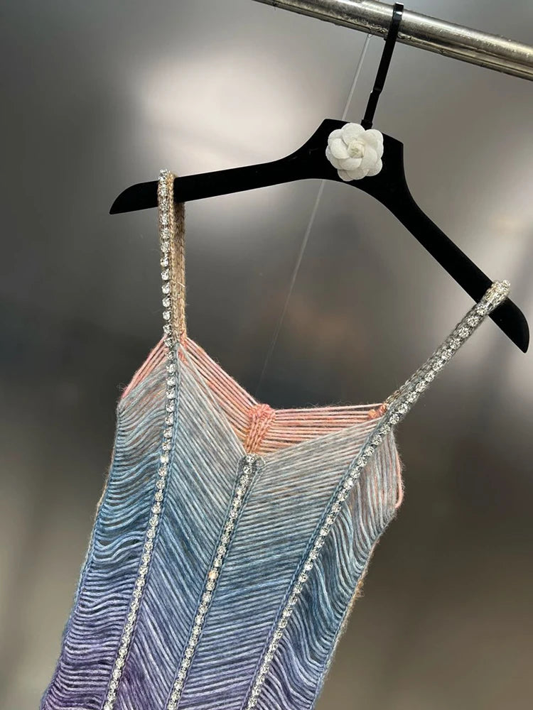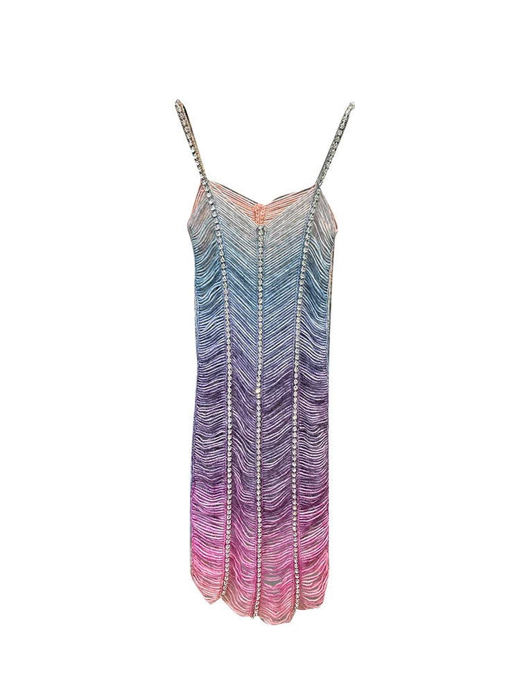 This premium mini dress is perfect for special occasions. It features a gradient color scheme and rhinestone accents, adding a touch of glamour. The form – fitting silhouette accentuates the wearer’s curves.
