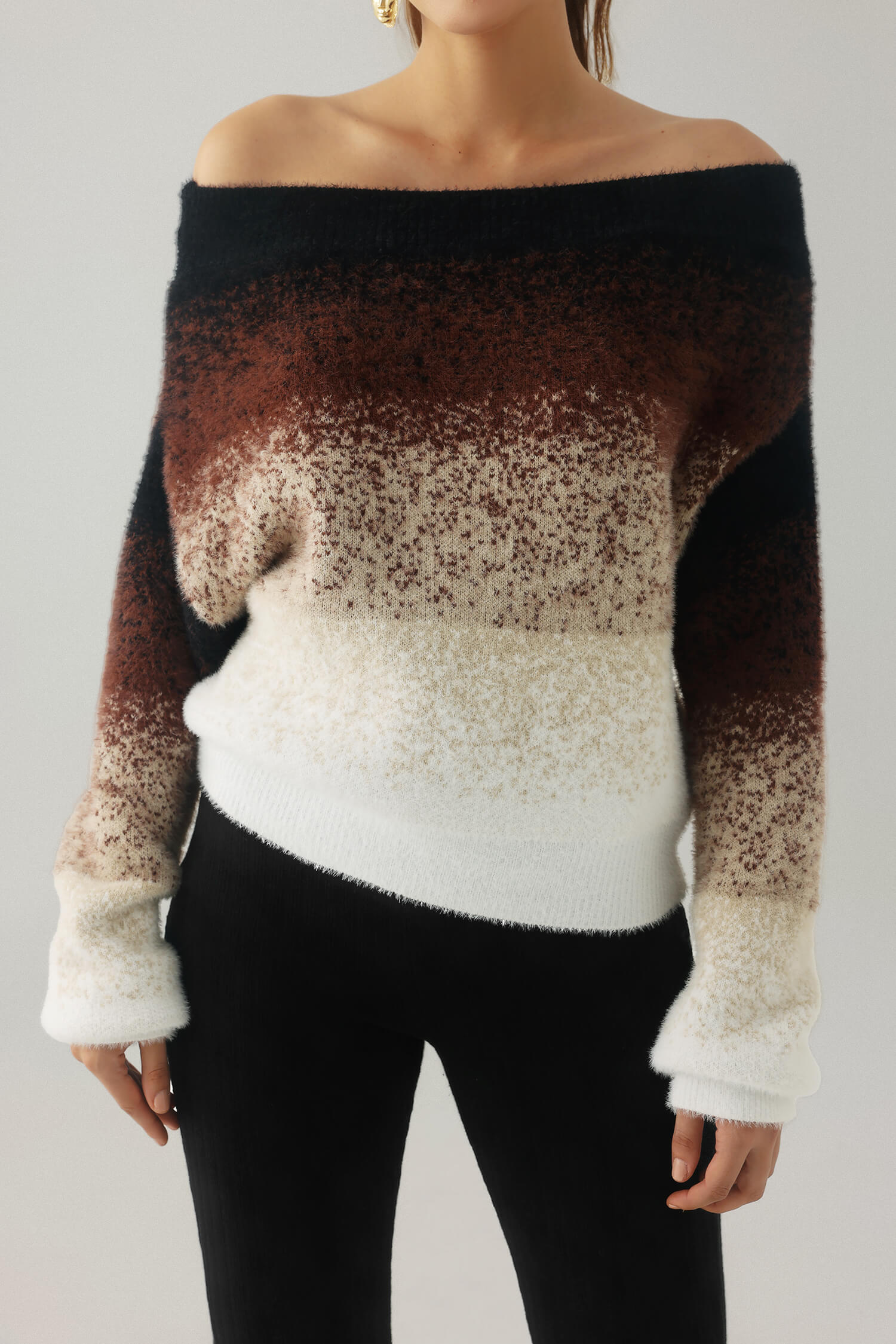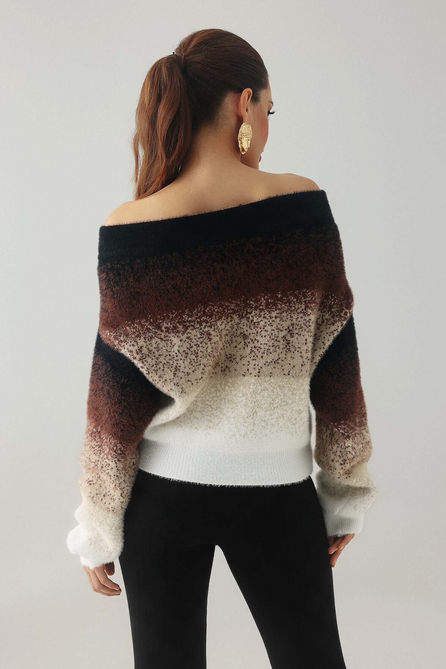 Indulge in the comfort and style of this luxurious women’s off – the – shoulder sweater. It offers a relaxed fit and a trendy design, perfect for adding a touch of elegance to your wardrobe. The soft texture and unique gradient pattern make it a standout piece.