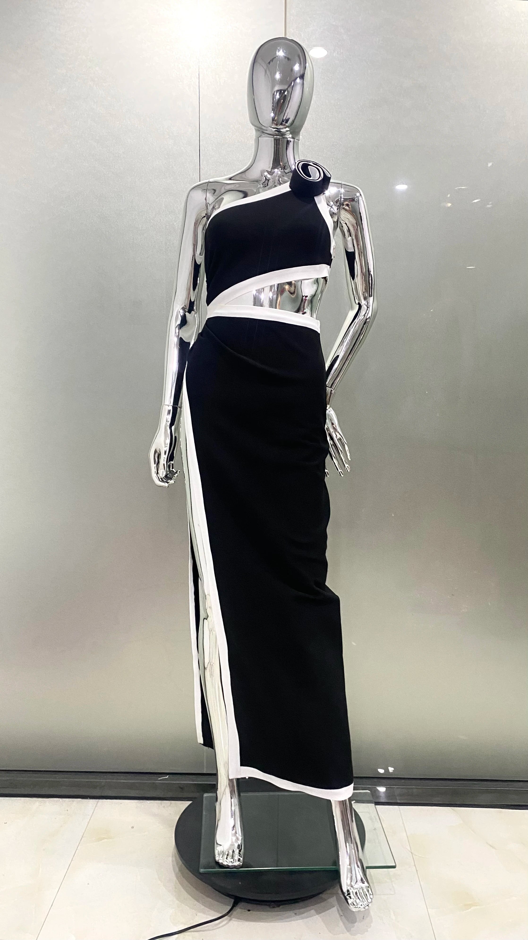 Indulge in the elegance of this luxury formal evening dress. Its form – fitting silhouette and structured details make it perfect for making a statement at special occasions. The bold contrast adds a touch of sophistication, ensuring you stand out from the crowd.