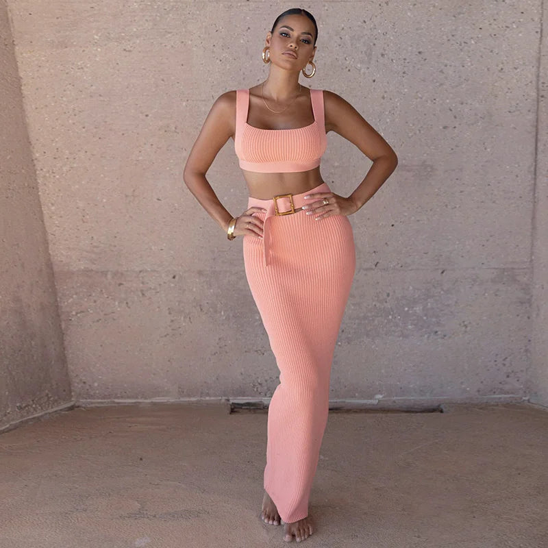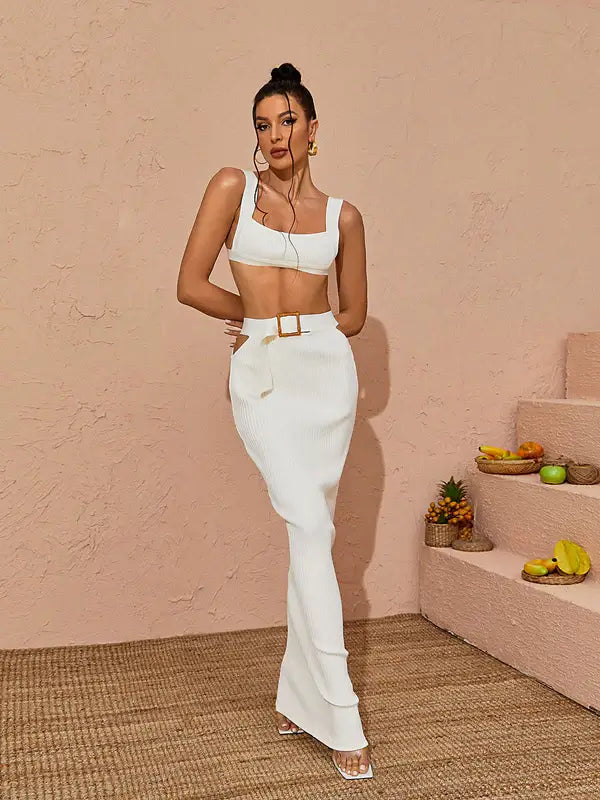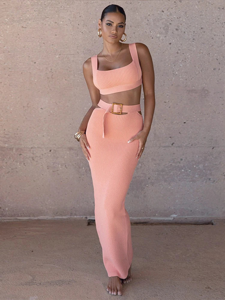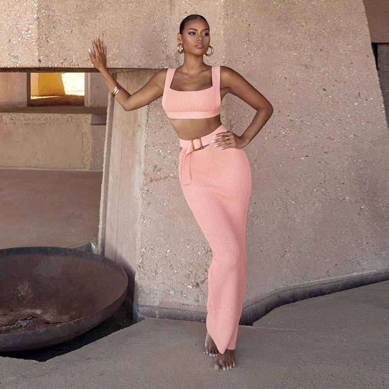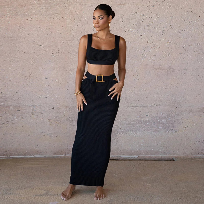 This two-piece knitwear set offers a perfect blend of comfort and style. Ideal for casual or semi – formal warm – weather occasions, it features a trendy design that flatters the figure.