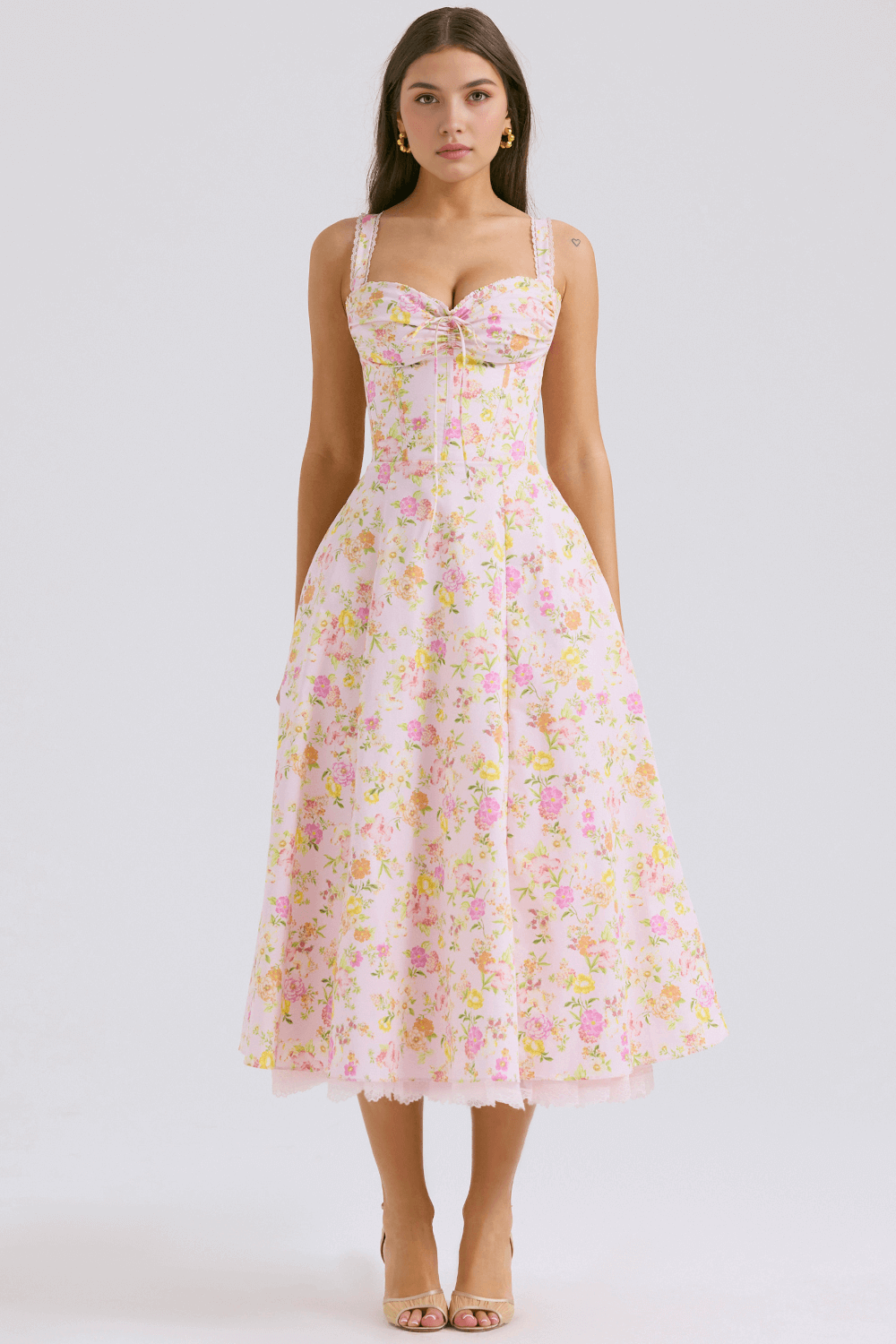 Indulge in the charm of this elegant dress. With its floral strap design, it offers a stylish and feminine look, perfect for various occasions. The dress combines comfort and style effortlessly.