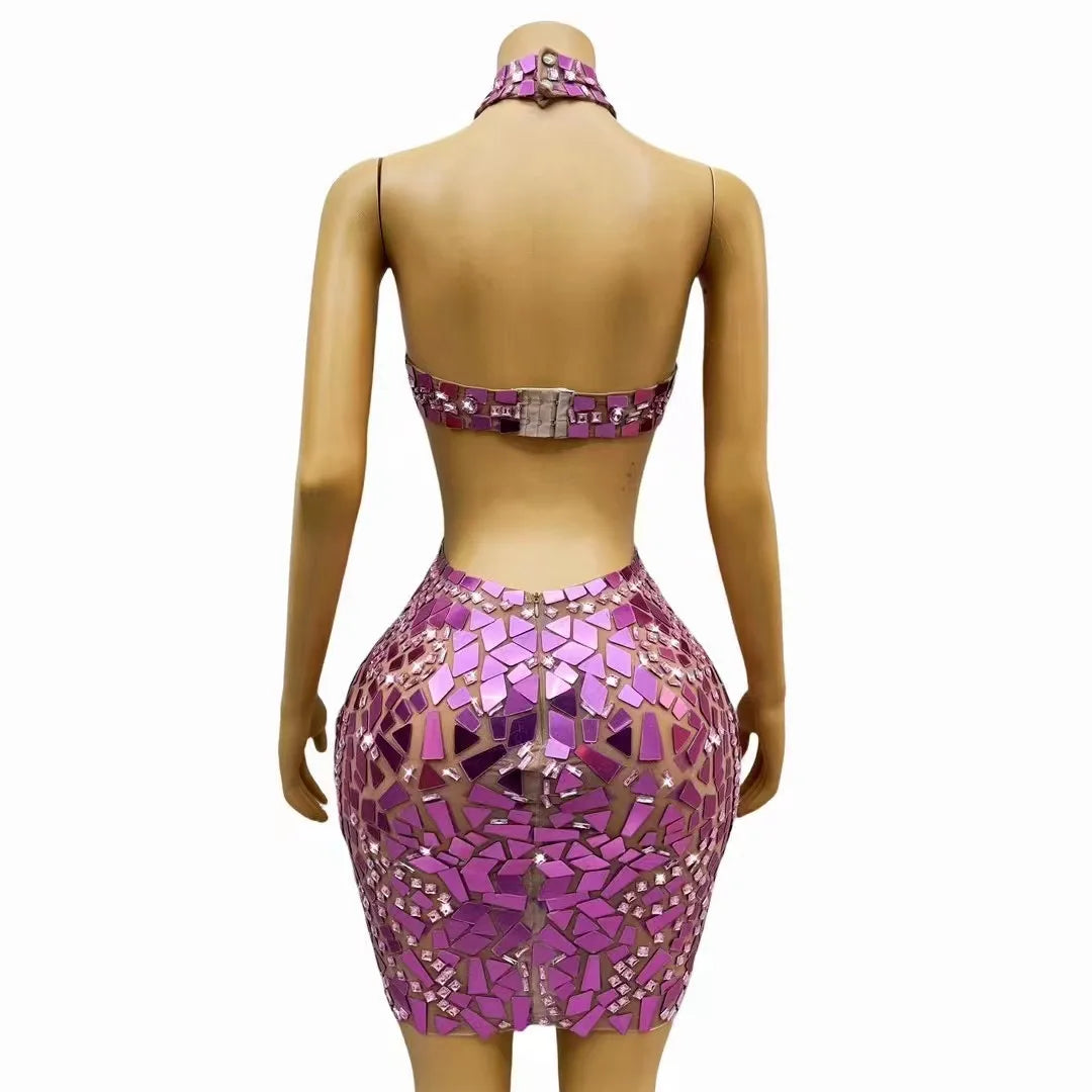 - Torso Design: Form – fitting bodice with side cutouts and a mosaic tile pattern