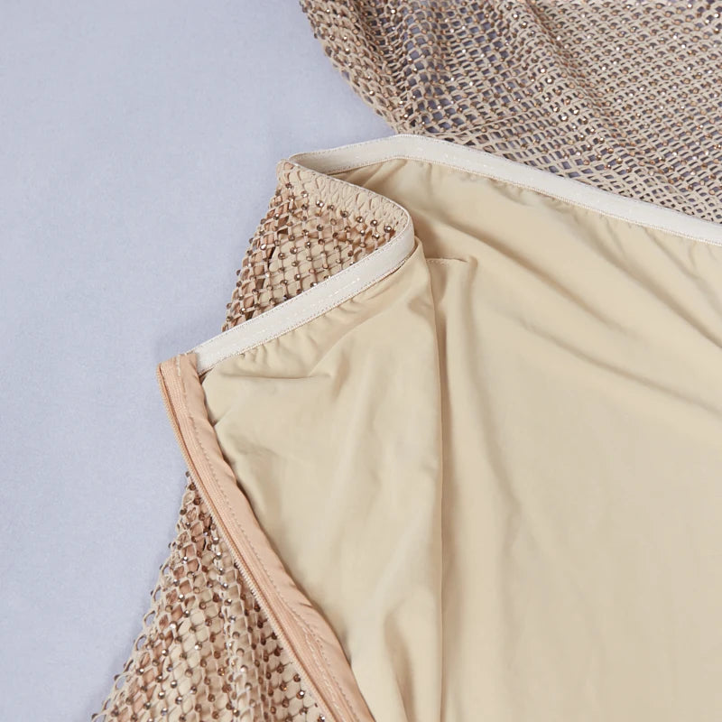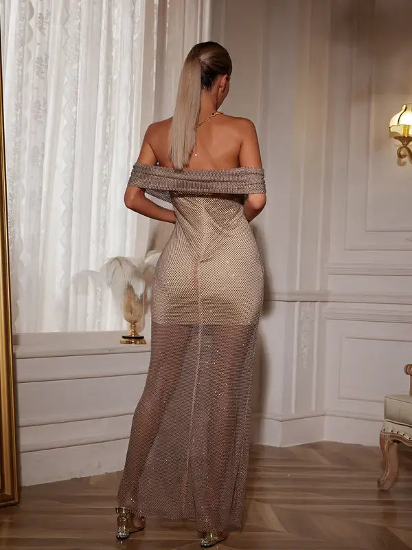 Indulge in elegance with this luxury formal evening dress. It combines a form – fitting silhouette to accentuate the wearer’s curves and a see – through mesh outer layer with glittering accents for a glamorous look. The smooth interior lining ensures comfort, making it a perfect choice for formal occasions.