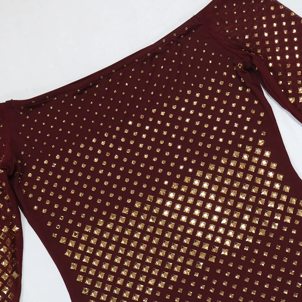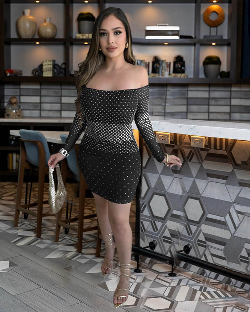 This off – shoulder party dress is a perfect choice for formal and semi – formal events. It features a form – fitting design that accentuates the curves, and the rhinestone embellishments add a touch of glamour.