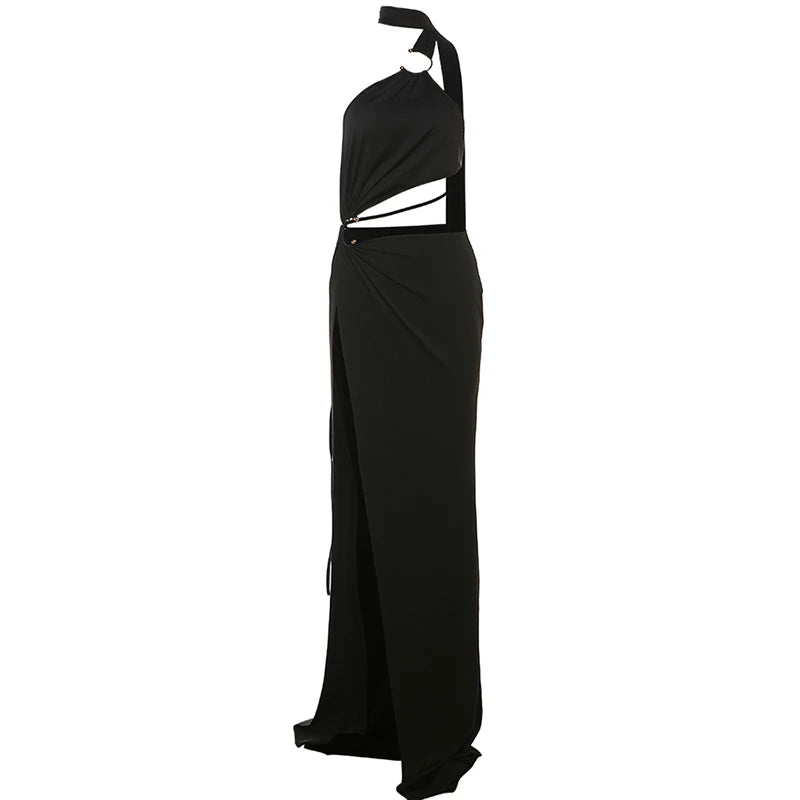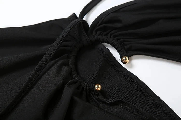 - Neckline/Straps: One – shoulder with ring detail (black) or halter – style with open back (green)