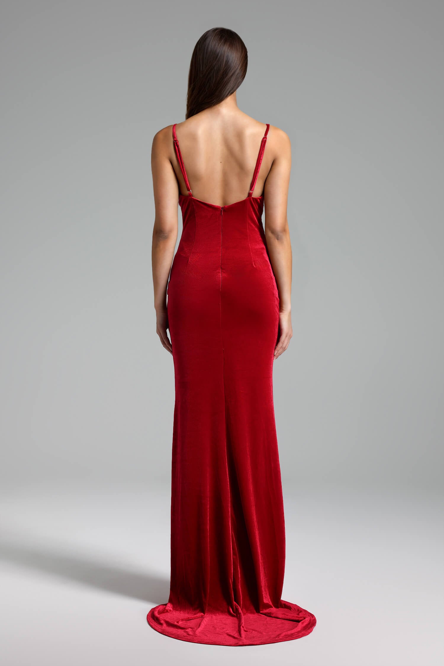 This formal evening dress is a perfect choice for special occasions. It offers a luxurious look with its form – fitting silhouette and elegant design, making you stand out in any event.