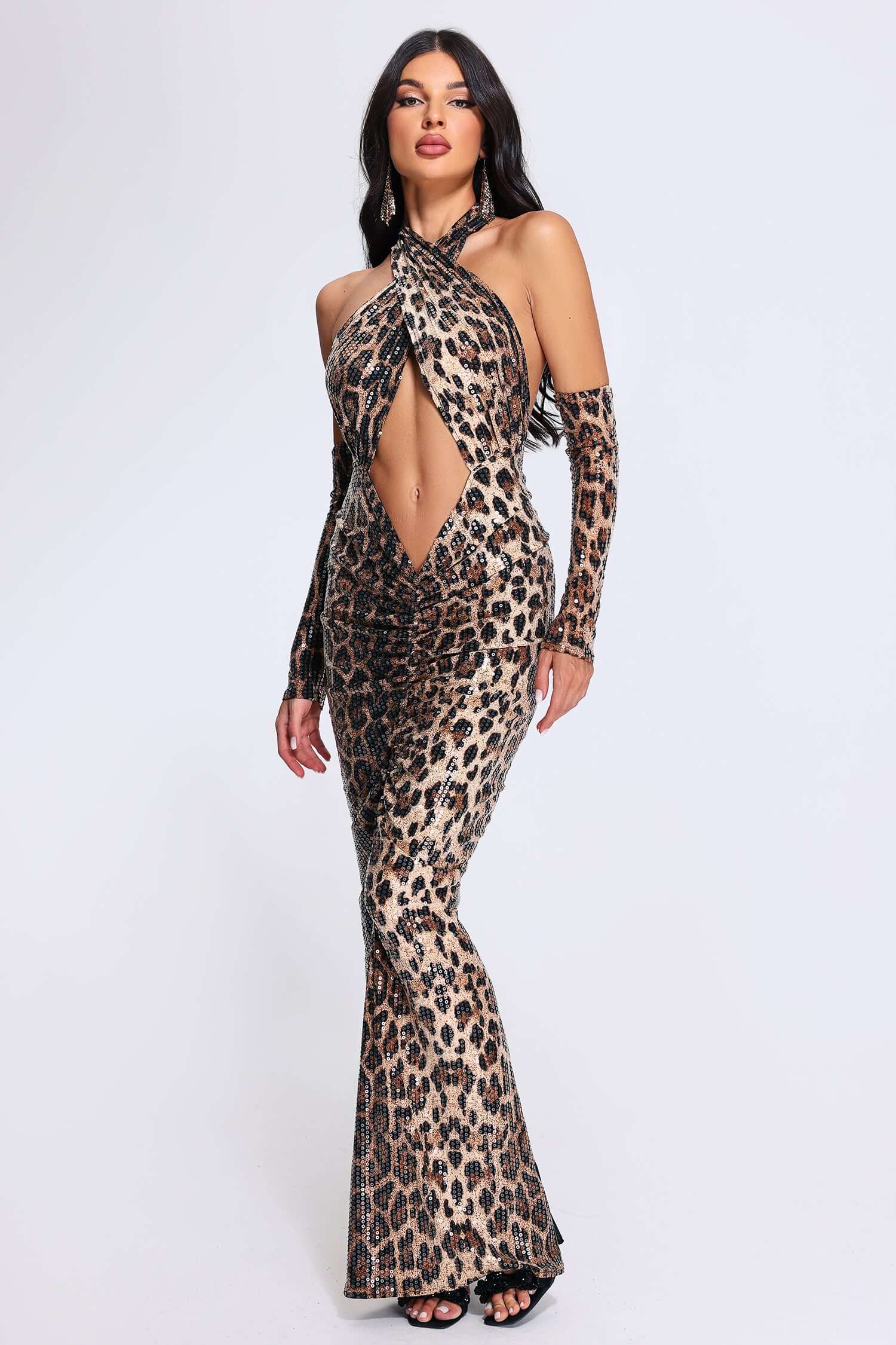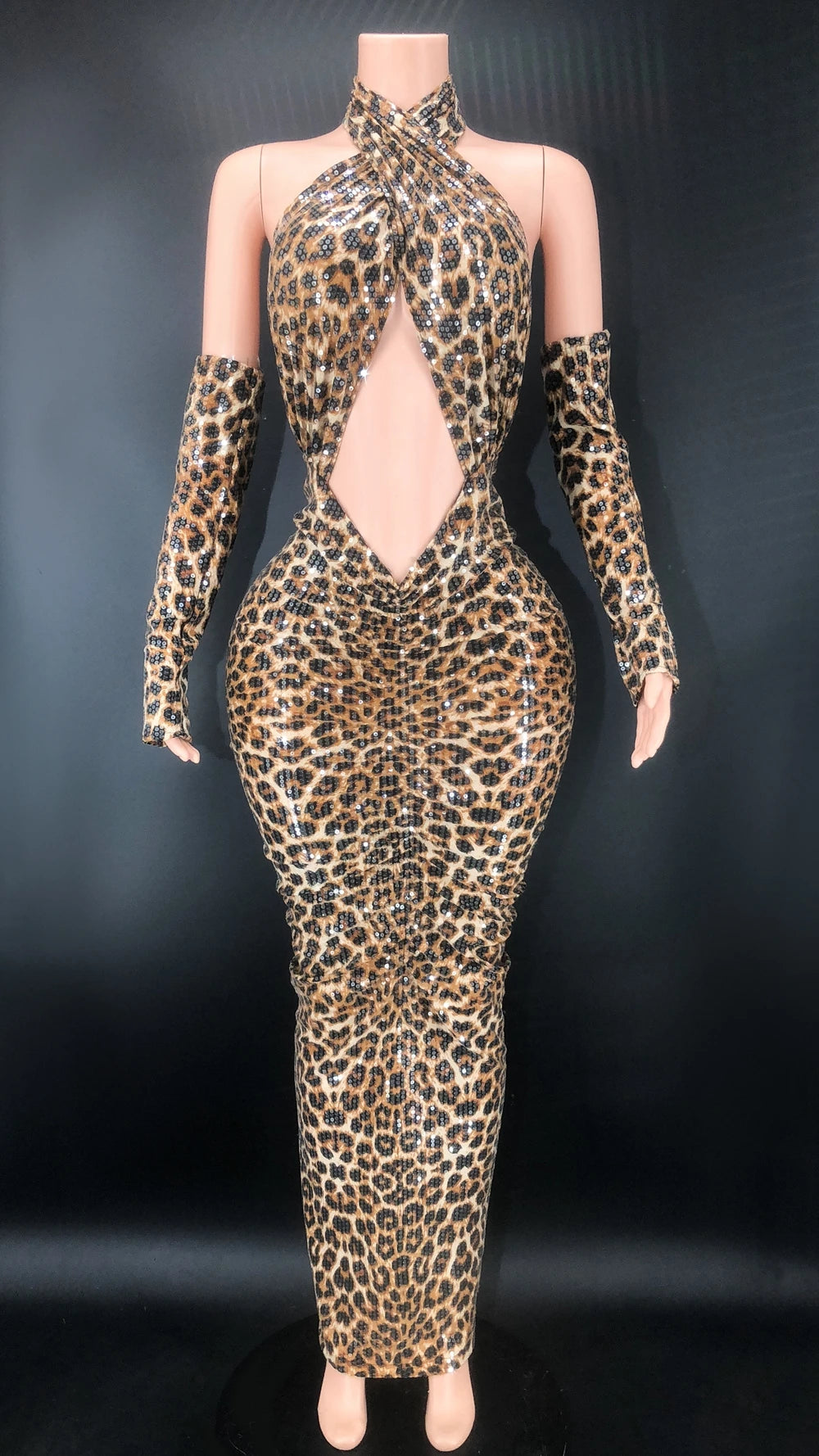 This evening dress is a perfect choice for formal and glamorous occasions. It features a form – fitting silhouette that flatters the figure, and the sequin embellishments add a touch of sparkle and elegance.