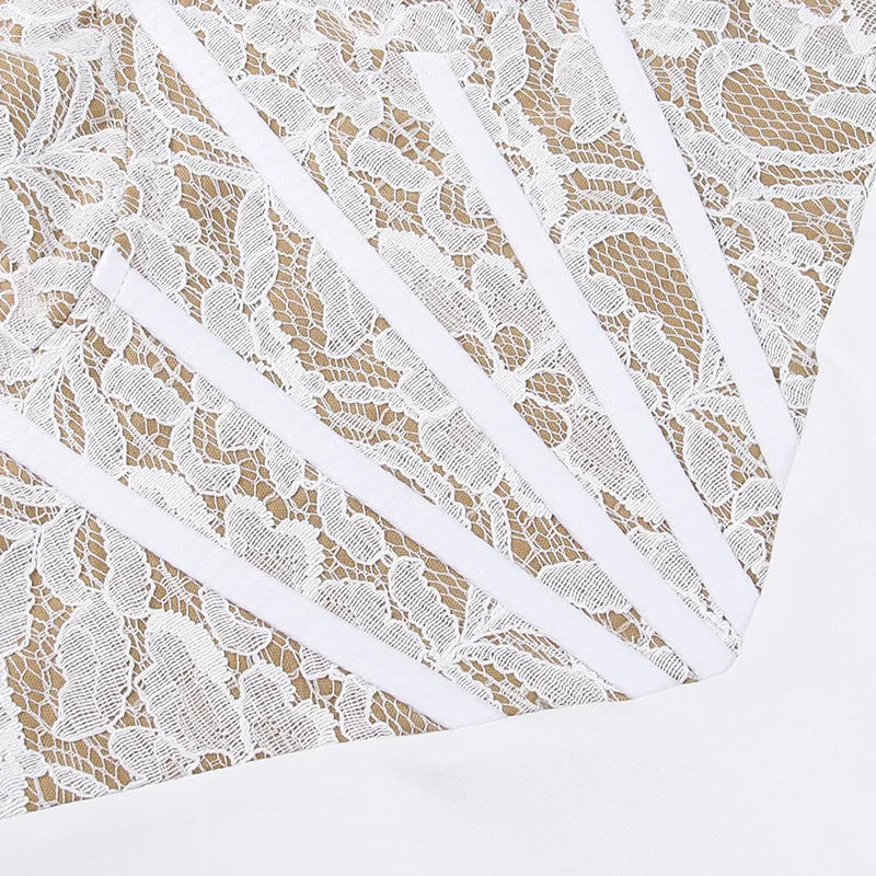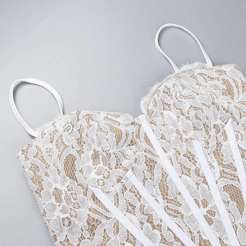 - Lace Bodice: Intricate floral lace with a delicate, open – weave pattern and vertical boning strips