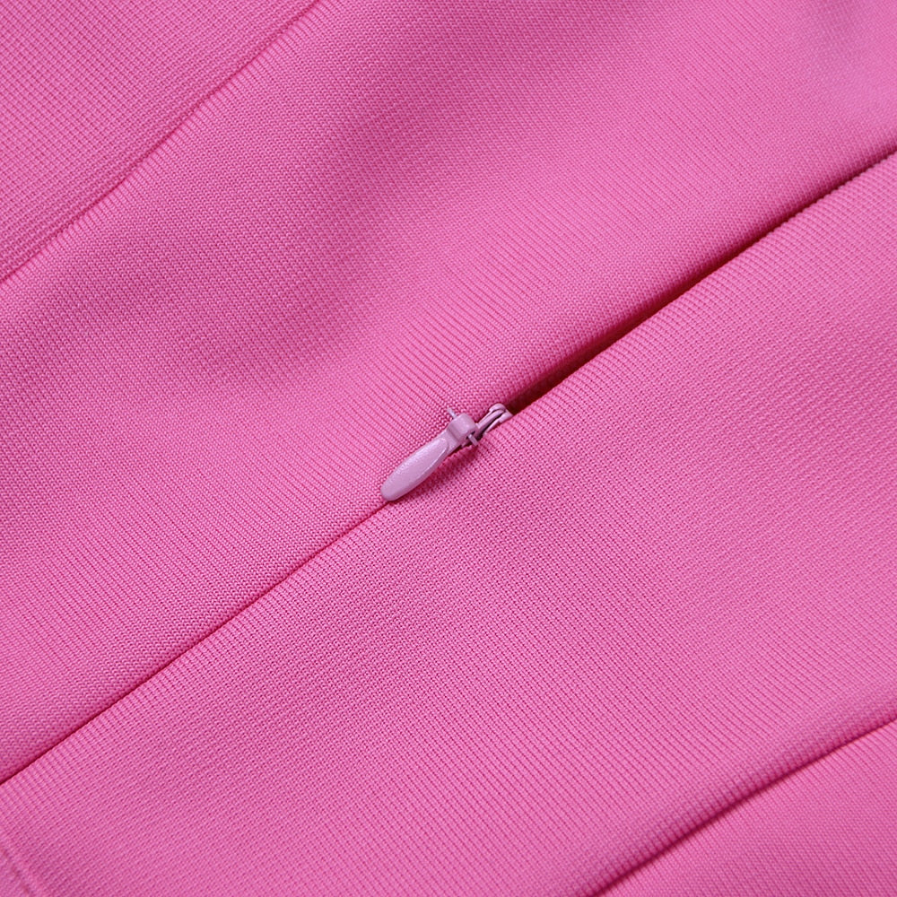 • Design features: Structured square – neckline with a bustier – inspired, heart – shaped bust cutout, long sleeves with feather – trimmed cuffs, straight bodycon hemline, structured bustier construction with underwired cups, defined waist with a subtle belted detail, and a zipper closure.
