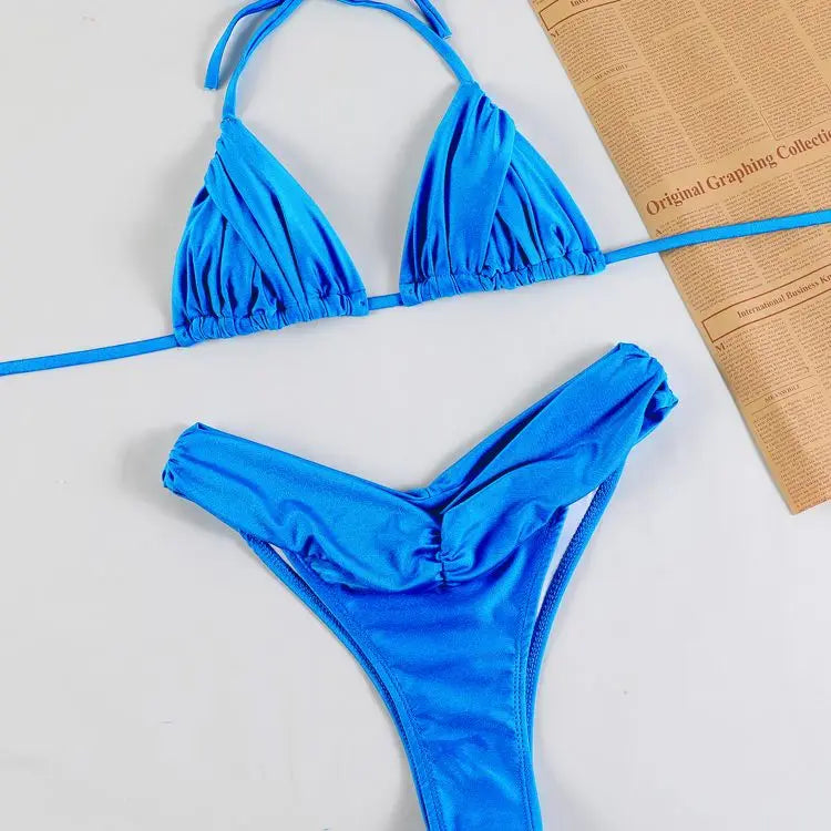 - Design features: The triangle bikini top has a triangle neckline and sleeveless design with subtle bust gatherings. The high – cut bikini bottom features an asymmetric V – cut front with front ruche and an elastic waistband.