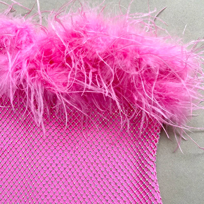 Indulge in the allure of this luxury evening dress. Its strapless design and feathered accents add a touch of glamour, making it perfect for special occasions. The body – hugging silhouette and flowing skirt ensure you’ll make a statement.