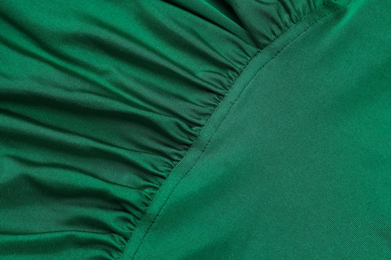 - Waist/Body: Fitted waistband with a high, defined silhouette; ruched skirt for texture and fit