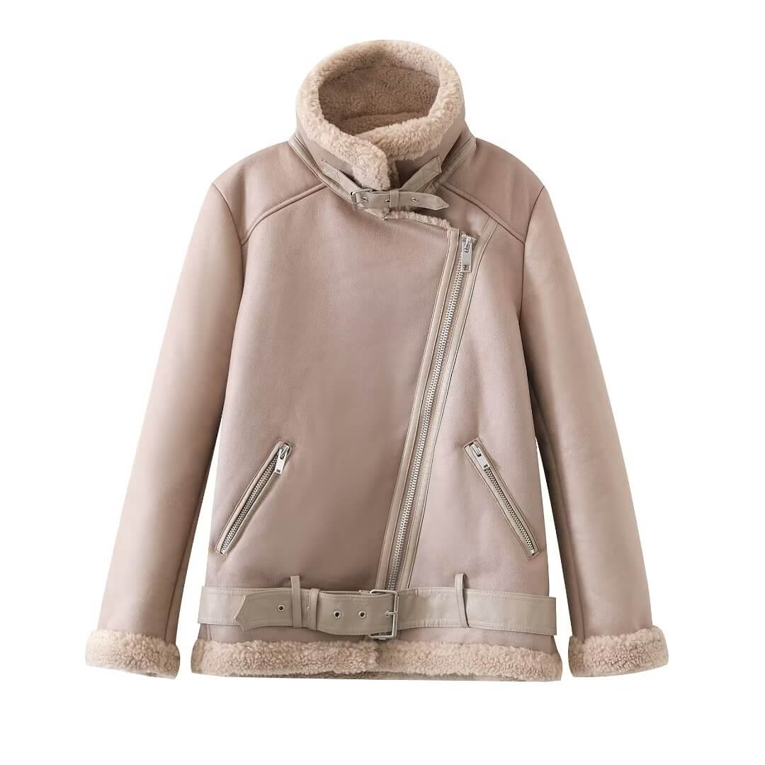 This women’s biker jacket combines style and warmth. The faux fur lining offers a plush feel, while the biker silhouette adds a trendy edge. It’s a great addition to any wardrobe for those cold days.